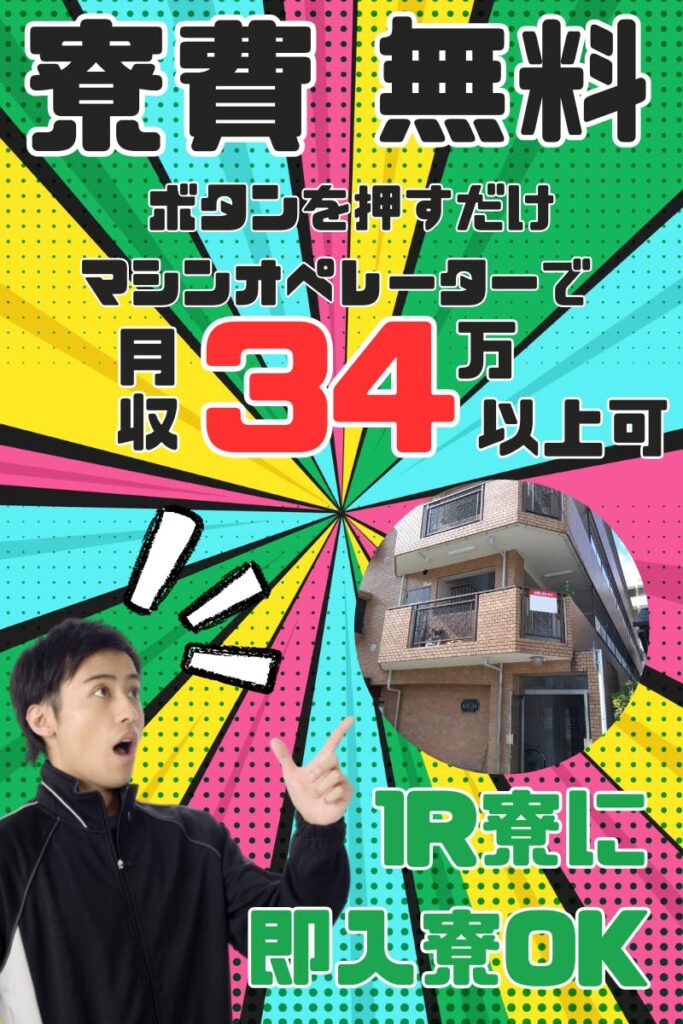【寮費無料&ボタンを押すだけ月34万円以上可!】【即入寮もOK!】部品を加工するマシンオペレーターで安定の高月収!<<広島県東広島市・寮付き求人>>