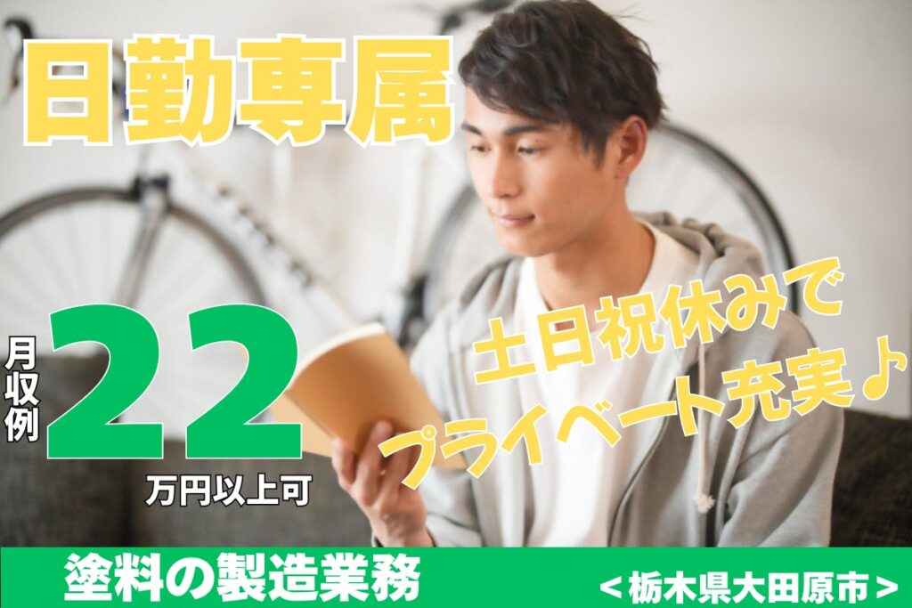 日勤×土日祝休み!残業少なめで月22万以上可★\安定性抜群企業でのお仕事/細かい作業がないから未経験者大歓迎♪<<栃木県大田原市>>