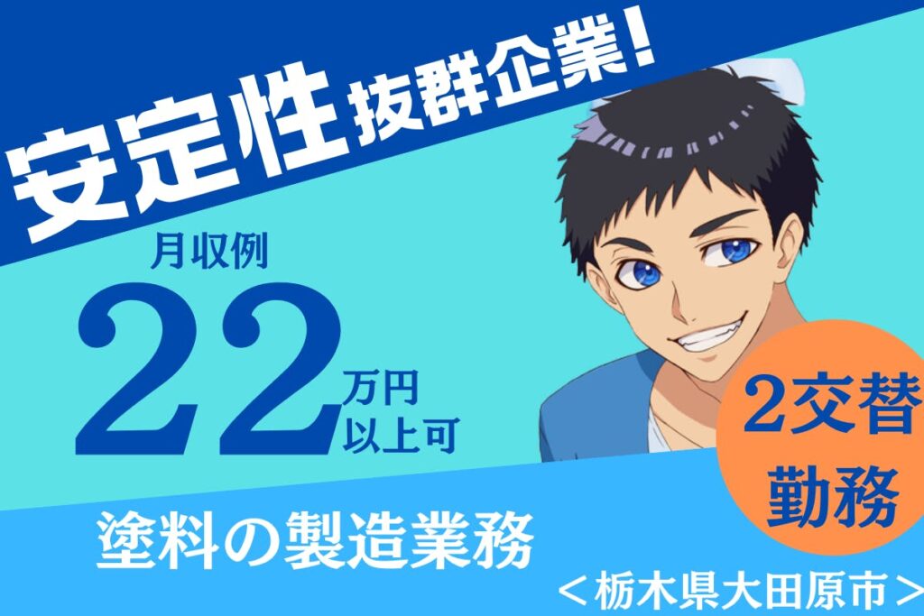 三大塗料メーカーの一つ!福利厚生も充実の安定性抜群企業で、安心の長期勤務◎食事補助あり!【大日本塗料株式会社 那須工場】