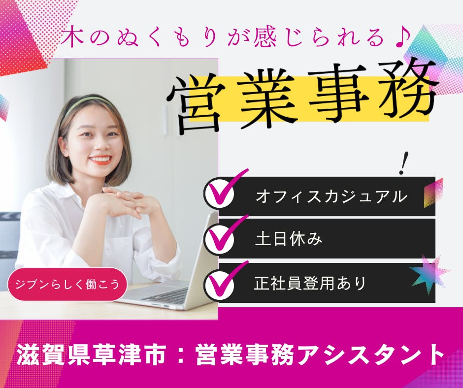 月25万円以上可!20代、30代の女性活躍中■オフィスカジュアルでOK!|髪型自由・ネイル・ピアスOK|土日休み|木材工場での営業事務<<滋賀県野洲市>> kst120-77
