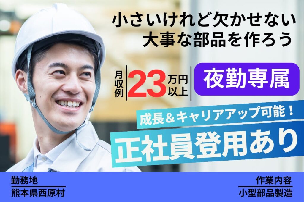 【夜勤専属】20時開始の夜勤!大手優良企業で安定就業が可能◎20代・30代男性活躍中【車部品のマシン操作・検査】寮ありで即入寮も可◎<大阪府箕面市> osk106-6-99