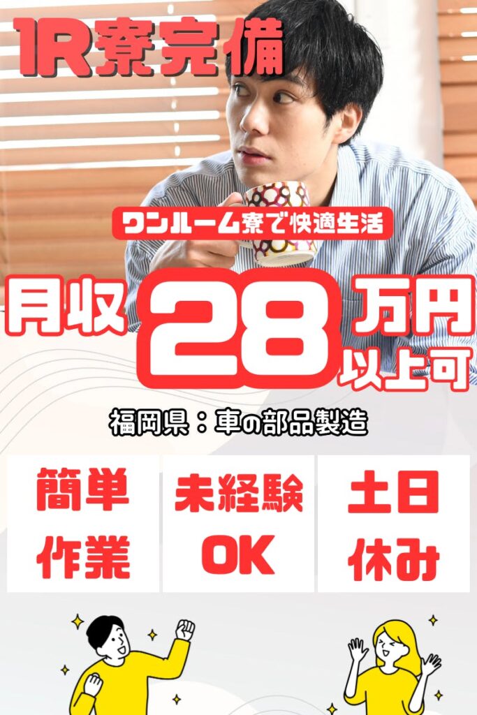 ★寮費無料★自宅から通勤のあなたも慰労金あり♪車の部品製造で月28万円以上可能な安定収入!未経験でも丁寧に教えます!▼自動車用部品の組立・部品供給スタッフ<<福岡県苅田町>> knd122-2-99